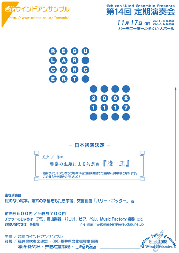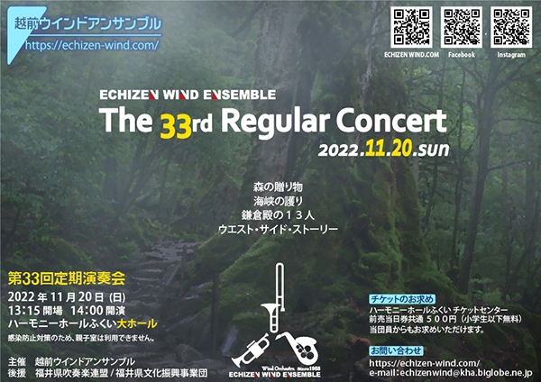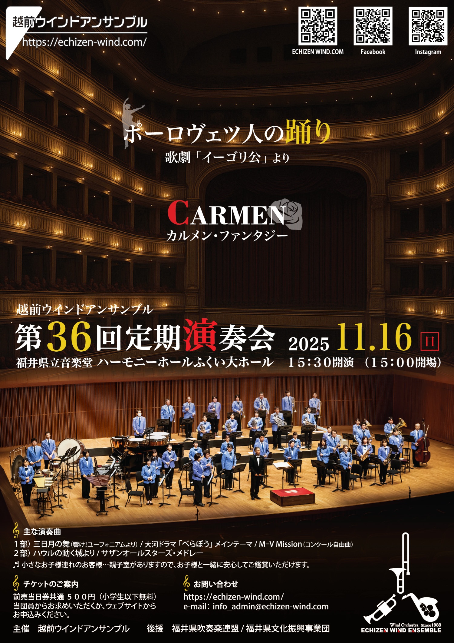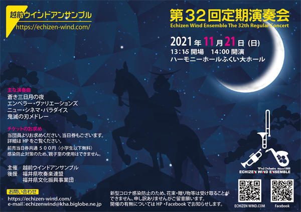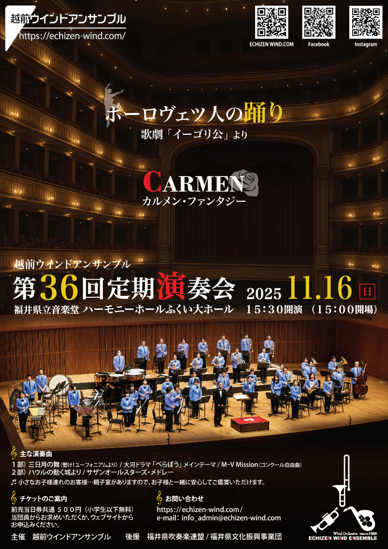 越前ウインドアンサンブル(Echizen Wind Ensemble) は福井を中心に活動する一般の吹奏楽団です。