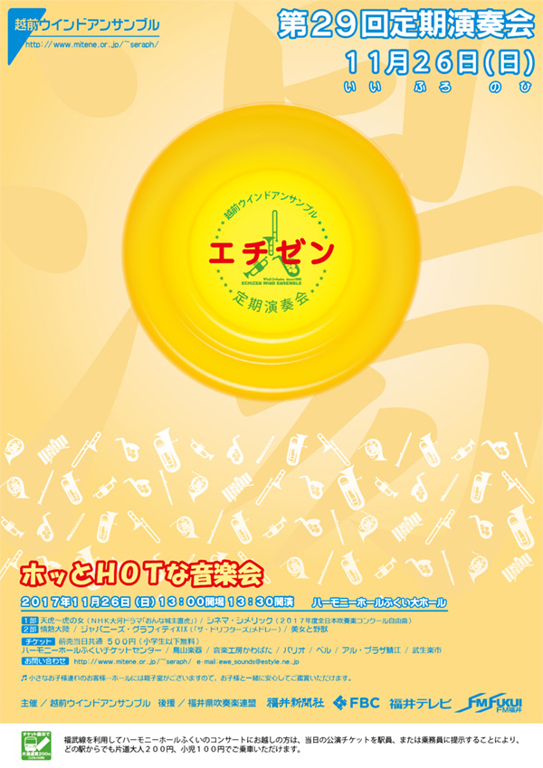 越前ウインドアンサンブルは第29回ふくいバンドフェスタに参加します。